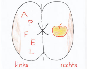 Beispiel lesen: Die linke Hirnhälfte hilft uns, einen Text zu erlesen: B I R N E. Um den Inhalt aber auch zu verstehen, brauchen wir die rechte Hirnhälfte: Sie erkennt den Wortklang und lässt ein Bild des Gelesenen entstehen.