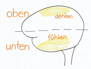 Oben - unten: Wir haben gleichzeitig Zugang zur Grosshirnrinde (denken) und dem limbischen System (fühlen).