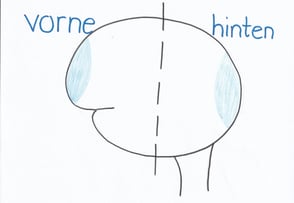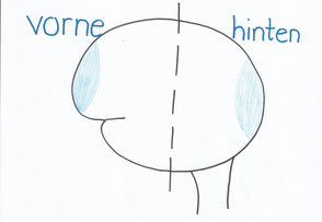 Hinten - vorne: zu Hinterhirn (Eindrücke verarbeiten und speichern) und Vorderhirn (Informationen ausdrücken).