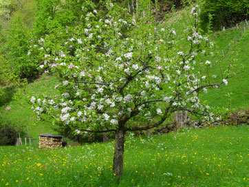 Erst wenn beide Gehirnhälften gleichzeitig arbeiten und sich austauschen, merke ich , dass ich mich auf einer Wiese mit vielen Gräsern und Blumen und einem blühenden Apfelbaum befinde.